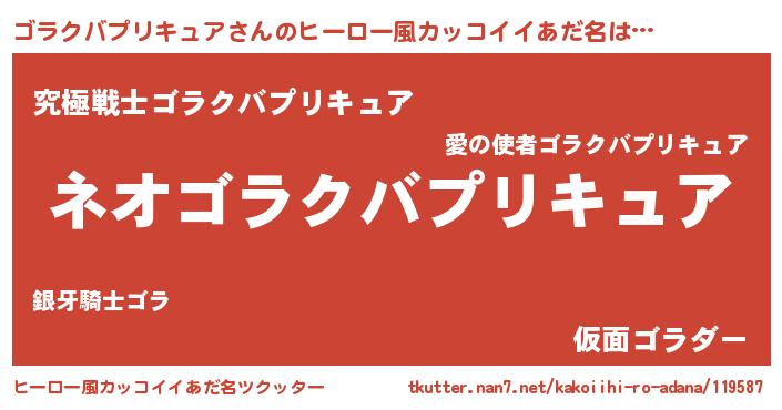 | 意味不明あだ名 | 『永久保存ゴラクバプリキュア』 |
