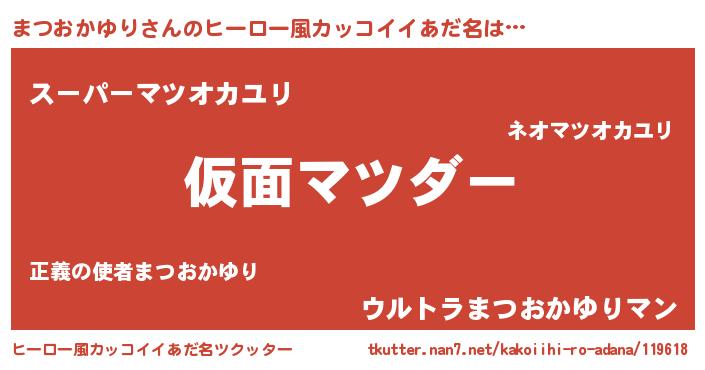 | 男性向けラノベタイトル風あだ名 | 『魔弾の王とまつおかゆり』 |