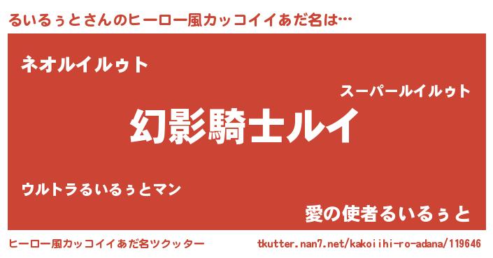 | 男性向けラノベタイトル風あだ名 | 『るいるぅとの嫁は女の子じゃないと思った?』 |