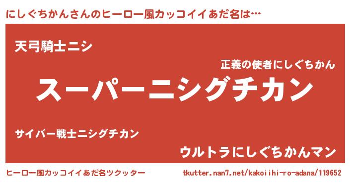| 男性向けラノベタイトル風あだ名 | 『にしぐちかんの憂鬱』 |
