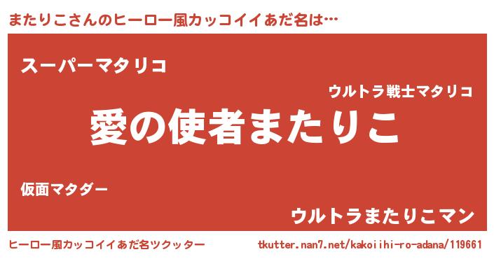 | 女子向けラノベタイトル風あだ名 | 『またりこ恋絵巻』『またりこ伯爵の花嫁』 |