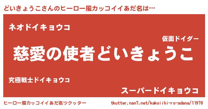 | 男性向けラノベタイトル風あだ名 | 『どいきょうこに滅ぼされるだけの簡単なお仕事です』 |