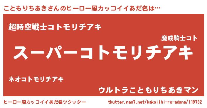 | 女子向けラノベタイトル風あだ名 | 『こともりちあきの玉の輿計画!』 |