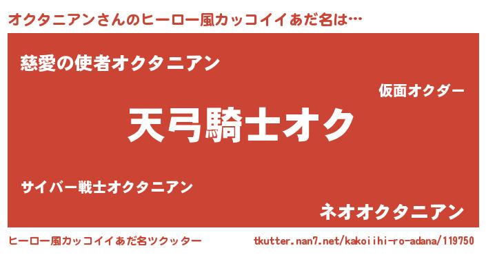 | 男性向けラノベタイトル風あだ名 | 『うちのオクタニアンが世界を掌握している!』 |