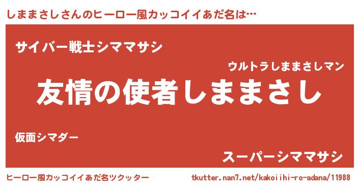 | 男性向けラノベタイトル風あだ名 | 『おまえをオタクにしてやるから、俺をしままさしにしてくれ! 』 |