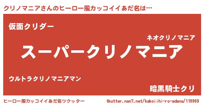 | 男性向けラノベタイトル風あだ名 | 『クリノマニアアートオンライン』 |