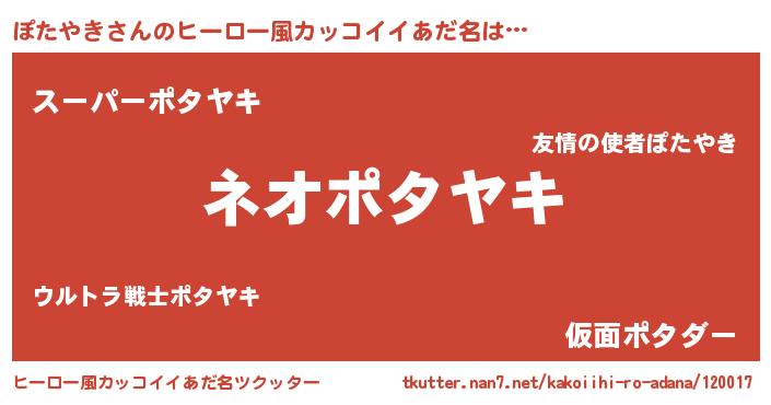 | 胡散臭い通販商品みたいなあだ名 | 『絶対に幸福をもたらす健康食品…その名も「ぽたやき」』 |