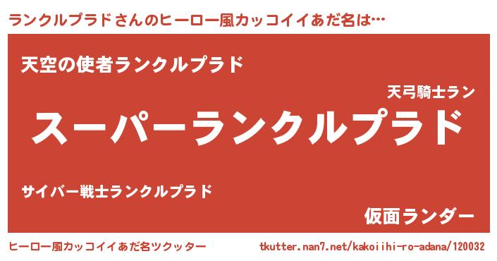 | 欧米人風あだ名 | 『トリンドルランクルプラド』 |