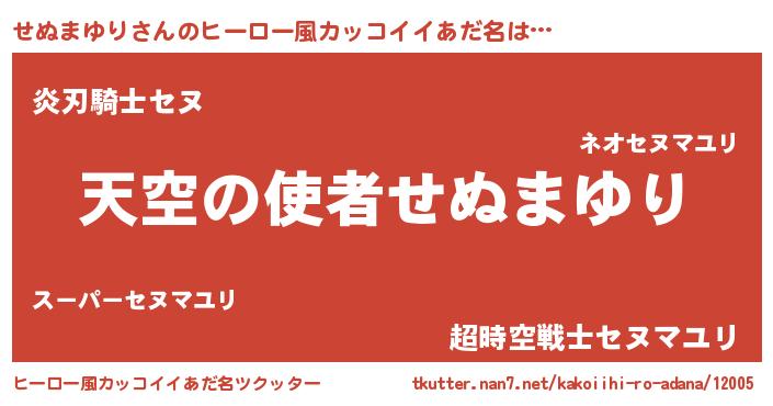 | 男性向けラノベタイトル風あだ名 | 『うちのせぬまゆりが世界を掌握している!』 |