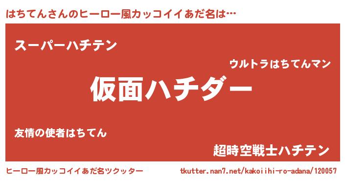 | 男性向けラノベタイトル風あだ名 | 『魔弾の王とはちてん』『はちてんの憂鬱』 |