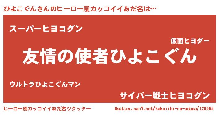 | 女子向けラノベタイトル風あだ名 | 『ひよこぐん恋絵巻』『闇のひよこぐん』 |