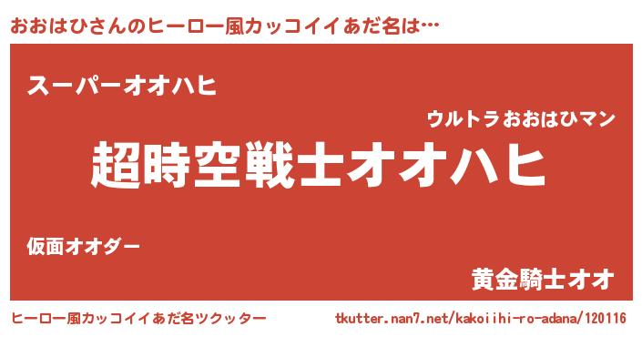 | 女子向けラノベタイトル風あだ名 | 『おおはひなんてお断りですっ。』 |