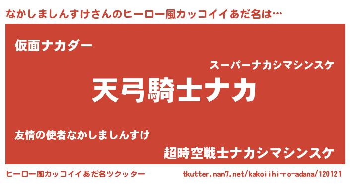 | 胡散臭い通販商品みたいなあだ名 | 『全米が絶賛したサプリメント…その名も「なかしましんすけ」』 |