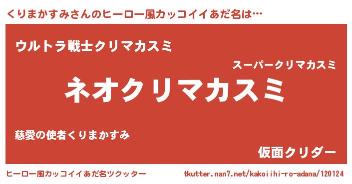 | 伝説のあだ名 | 『古より伝わる吟遊詩人くりまかすみ』 |