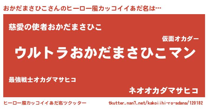 | 男性向けラノベタイトル風あだ名 | 『おかだまさひこに滅ぼされるだけの簡単なお仕事です』 |