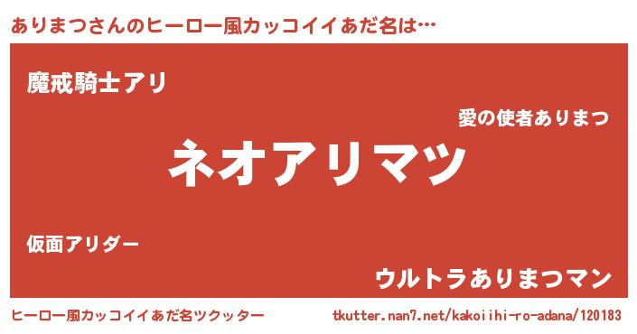 | ヘコむあだ名 | 『ありまつ(苦笑)』『あり太郎』 |