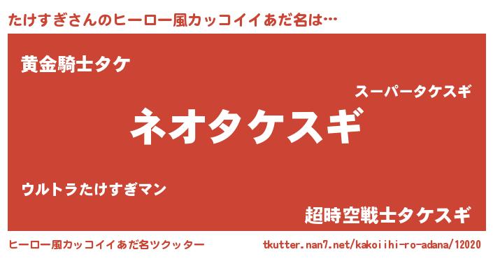 | 意味不明あだ名 | 『永久保存たけすぎ』『自称たけすぎ』 |