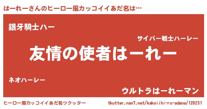 | 男性向けラノベタイトル風あだ名 | 『ハーレースレイヤー』 |