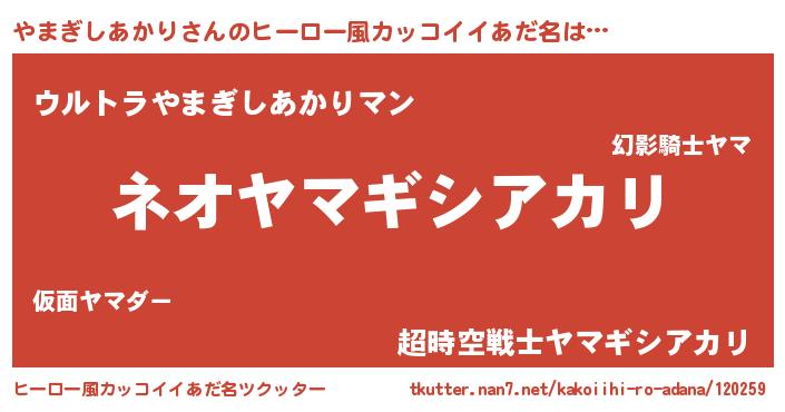 | 意味不明あだ名 | 『永久保存やまぎしあかり』 |