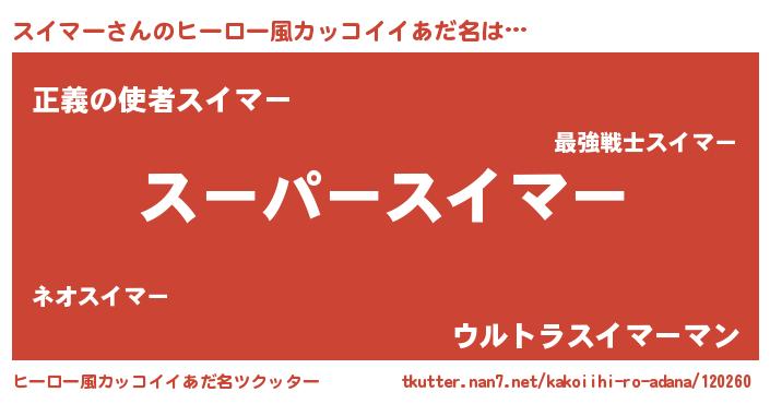 | 男性向けラノベタイトル風あだ名 | 『スイマーの憂鬱』『スイマースレイヤー』 |