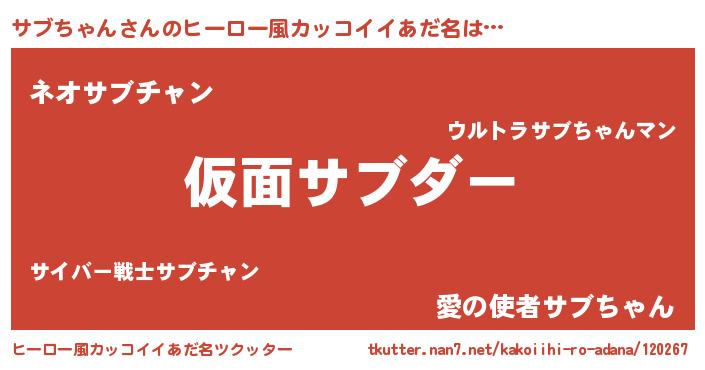 | 意味不明あだ名 | 『めかぶ科サブちゃん属』 |