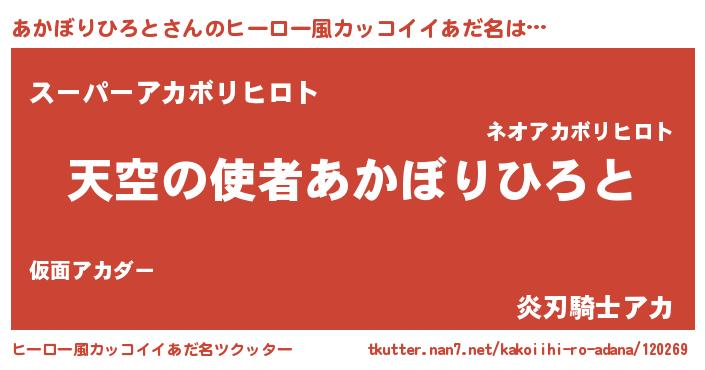 | 男性向けラノベタイトル風あだ名 | 『ノーゲーム・ノーアカボリヒロト』 |