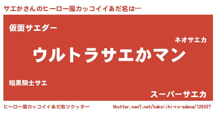 | 男性向けラノベタイトル風あだ名 | 『うちの娘の為ならば、俺はもしかしたらサエかも倒せるかもしれない。』 |