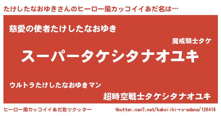 | 男性向けラノベタイトル風あだ名 | 『たけしたなおゆきに滅ぼされるだけの簡単なお仕事です』 |