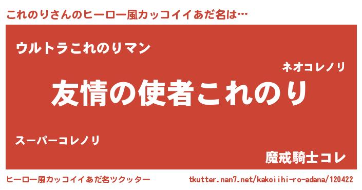 | 男性向けラノベタイトル風あだ名 | 『おまえをオタクにしてやるから、俺をこれのりにしてくれ! 』 |