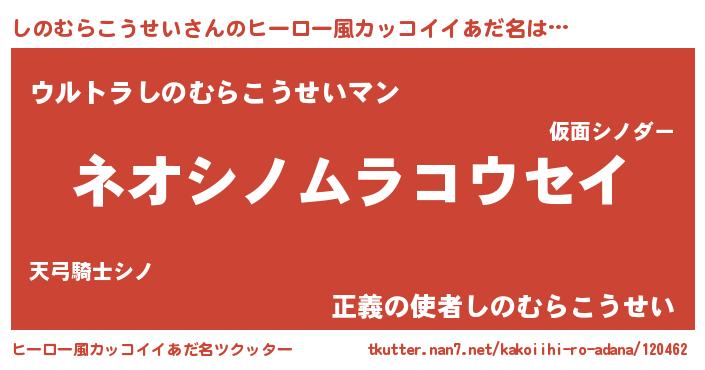 | 意味不明あだ名 | 『永久保存しのむらこうせい』 |