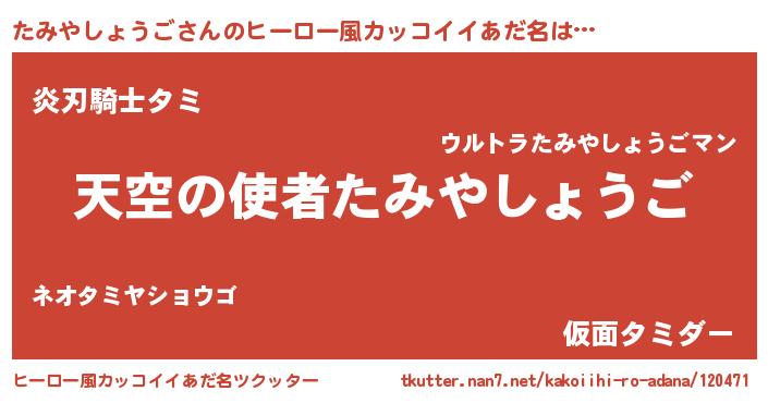 | 胡散臭い通販商品みたいなあだ名 | 『モンドセレクションを受賞したイリジウム磁石…その名も「たみやしょうご」』 |
