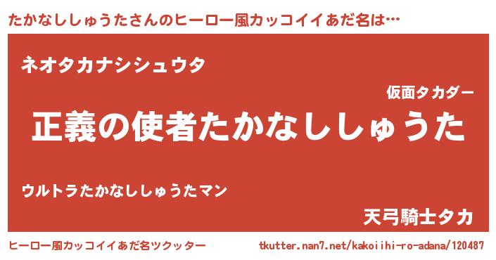 | ヘコむあだ名 | 『たかなししゅうた(苦笑)』『たかっちょ』 |