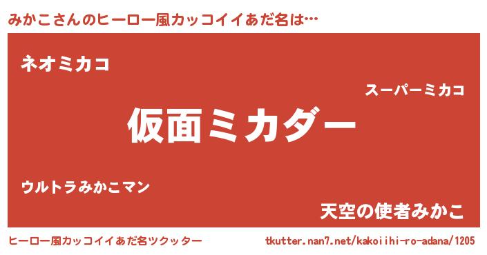 | 女子向けラノベタイトル風あだ名 | 『みかこが死なない童話 林檎のみかこの診療簿』 |