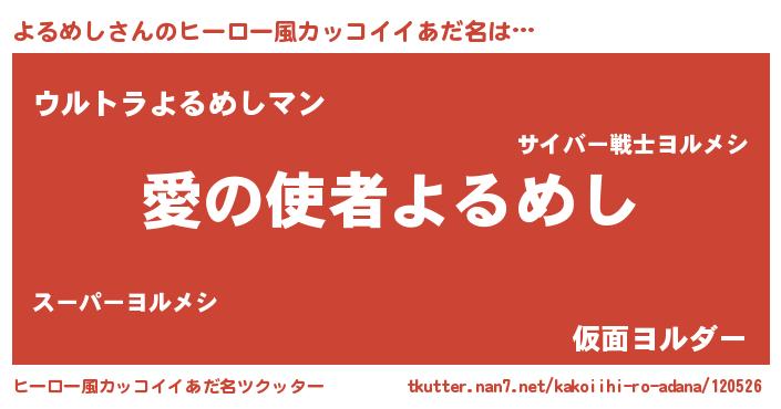 | 男性向けラノベタイトル風あだ名 | 『転生したらよるめしだった件』 |