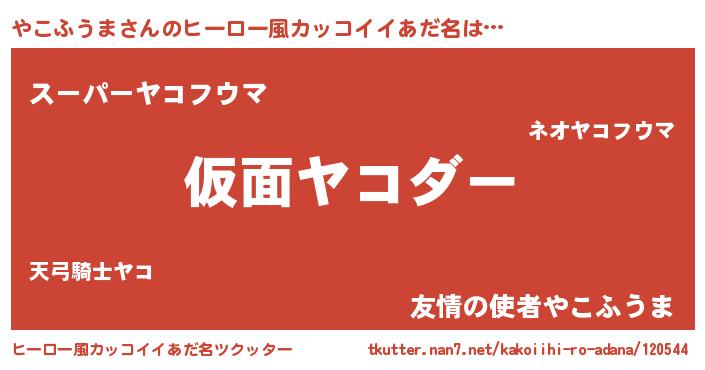 | 男性向けラノベタイトル風あだ名 | 『この素晴らしい世界にやこふうまを!』 |