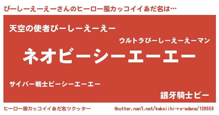 | 意味不明あだ名 | 『永久保存びーしーえーえー』 |