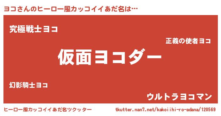 | 男性向けラノベタイトル風あだ名 | 『この素晴らしい世界にヨコを!』 |