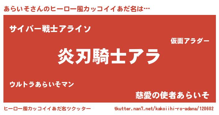 | 女子向けラノベタイトル風あだ名 | 『あらいそ様がみてる』 |