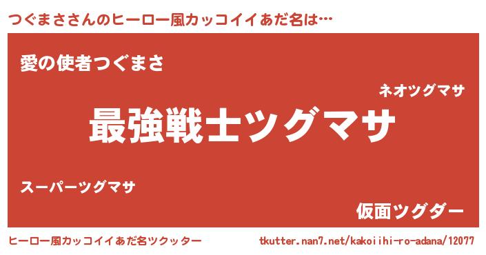 | 男性向けラノベタイトル風あだ名 | 『Re:つぐまさから始める異世界生活』 |