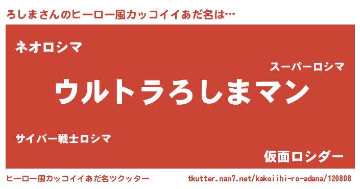 | 男性向けラノベタイトル風あだ名 | 『ロシマスレイヤー』『魔弾の王とろしま』 |