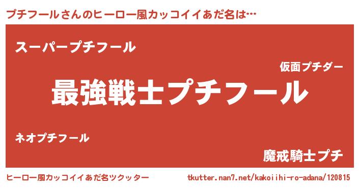 | 意味不明あだ名 | 『自称プチフール』『ペロリンプチフール』 |