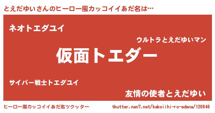 | 意味不明あだ名 | 『住所不定無職とえだゆい(53歳)』 |