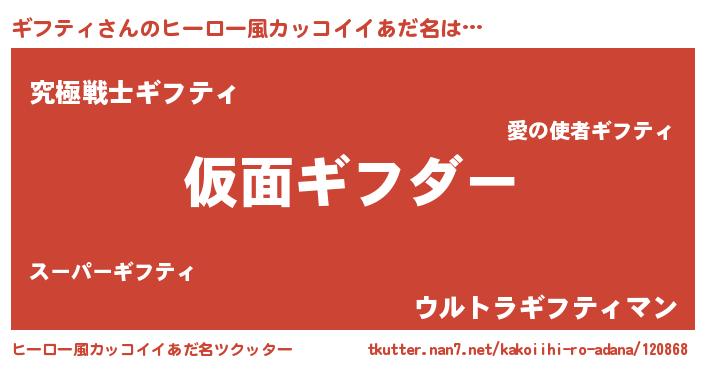 | ヘコむあだ名 | 『つくし』『ギフもー』『ギフ太郎』 |