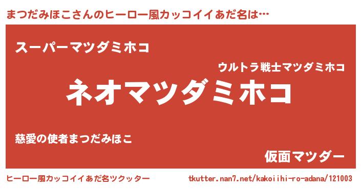 | 意味不明あだ名 | 『永久保存まつだみほこ』 |