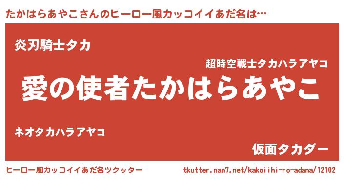 | 女子向けラノベタイトル風あだ名 | 『たかはらあやこ恋絵巻』 |