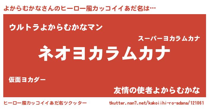 | 男性向けラノベタイトル風あだ名 | 『ヨカラムカナスレイヤー』 |