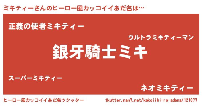 | 男性向けラノベタイトル風あだ名 | 『ミキティーの嫁は女の子じゃないと思った?』 |