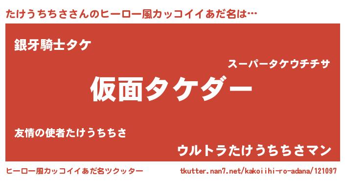 | ヘコむあだ名 | 『たけを』『なまこ酢』『たけもー』 |