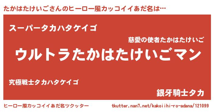 | 男性向けラノベタイトル風あだ名 | 『やはりたかはたけいごの青春ラブコメはまちがっている 』 |