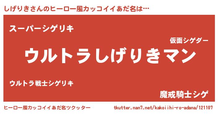 | 男性向けラノベタイトル風あだ名 | 『うちの娘の為ならば、俺はもしかしたらしげりきも倒せるかもしれない。』 |